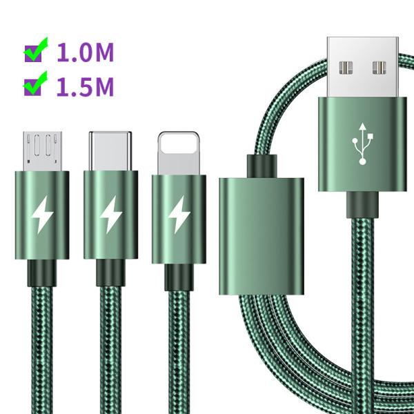 3-in-1 Fast Charge Cable USB Type C 5 Amp Data Charge Cable Braided Fabric Cord Images |